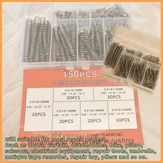 150 Pcs Stainless Steel Compression Springs Assortment Kit