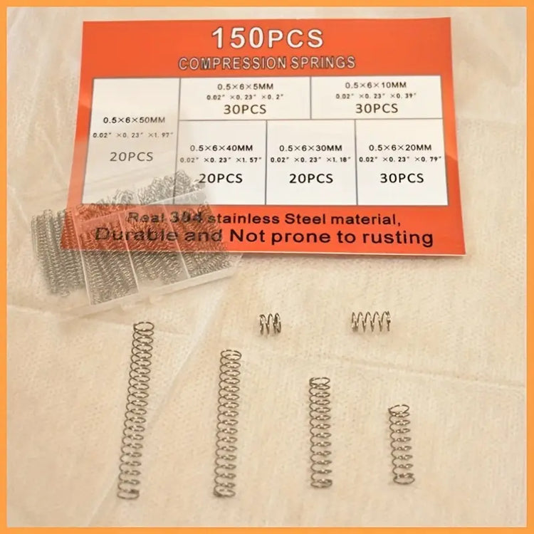 150 Pcs Stainless Steel Compression Springs Assortment Kit - 6 Sizes Durable 304 Material - Rust Resistant Spring Set for Shop & Home Repairs